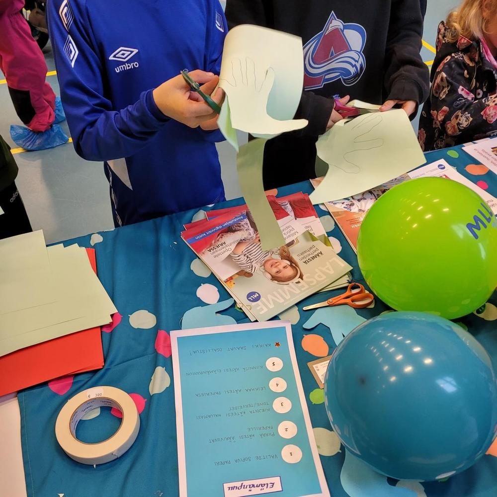 Yhdistyksemme pisteellä oli mahdollisuus osallistua Elämän puun askarteluun. Puun lehdet kootiin käsistä, joihin sai kirjoittaa omia ajatuksia ja toiveita.